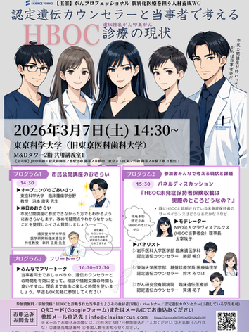 対象:市民、当事者(患者)、医師、看護師、遺伝カウンセラー、メディカルスタッフ、学生